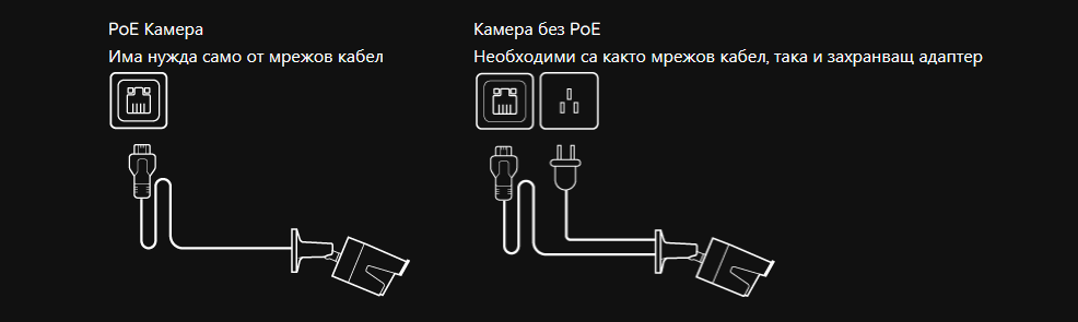 Истинска plug and play система за сигурност! Тя разполага с PoE (захранване през Ethernet) и се нуждае само от един мрежов кабел както за захранване, така и за предаване на видео сигнал. Лесно окабеляване – процесът на окабеляване не може да бъде по-лесен за ентусиасти и начинаещи „направи си сам“.