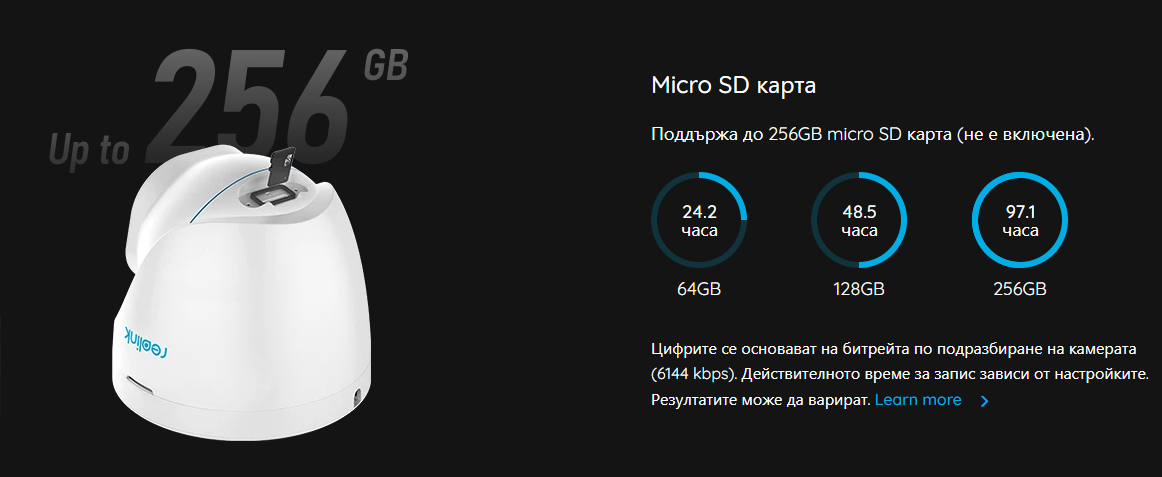 Тази интелигентна IP камера поддържа 24/7 непрекъснат запис, задействане на запис при движение или запис по график. Видеоклиповете от всичките тези 3 вида запис могат да бъдат записани в micro SD карта, Reolink NVR или FTP сървър. Изберете начин, който харесвате, и се насладете на лесна и персонализирана сигурност.